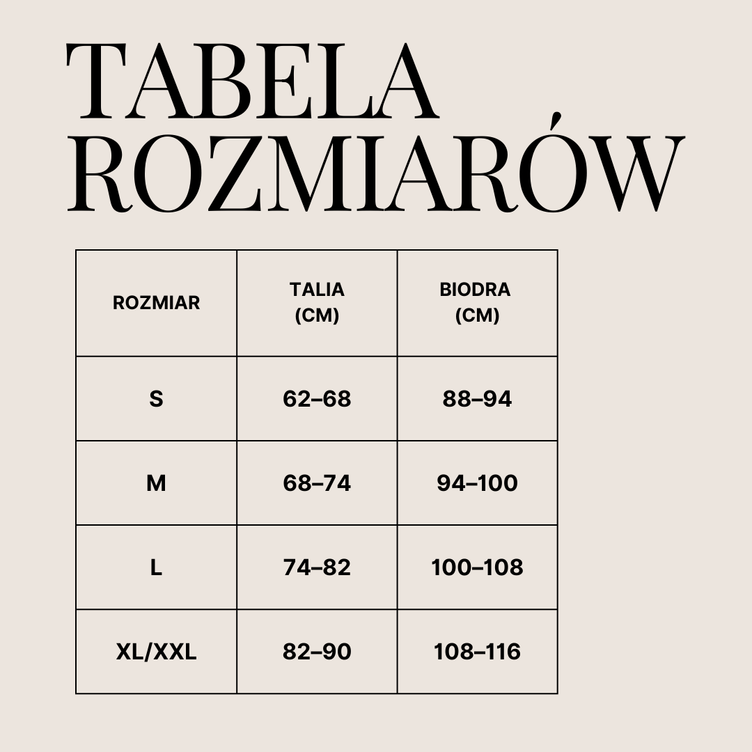 Zalecamy wybór rozmiaru który nosisz na codzień. Legginsy są elastyczne co zapewnia komfort noszenia. W razie wątpliwości zalecamy wybór większego rozmiaru. Na stronie widnieje również tabela rozmiarów dla rozwiania wątpliwości!